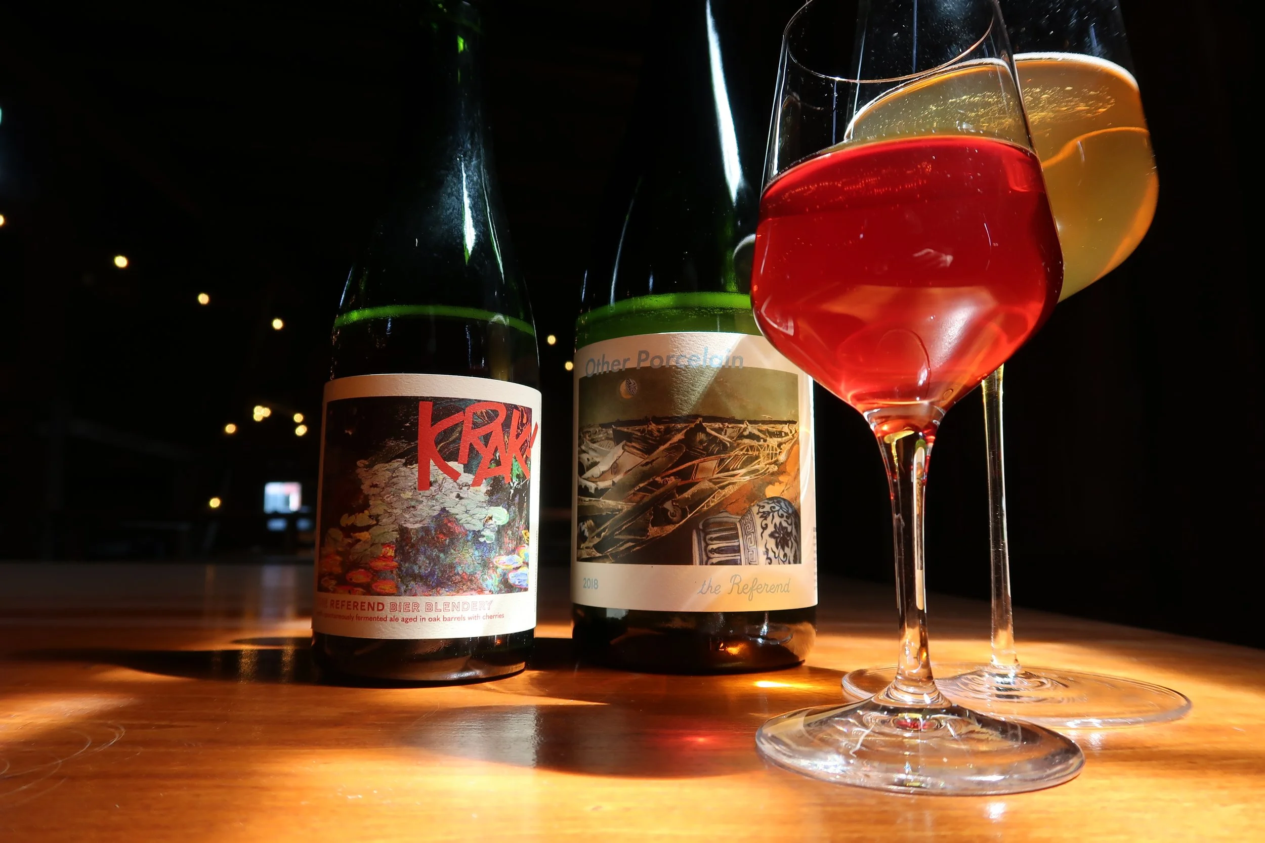 Krak! 2019 - spontaneously fermented golden ale refermented with NJ Montmorency & NY Morello sour cherries in oak barrels, 12 month maceration